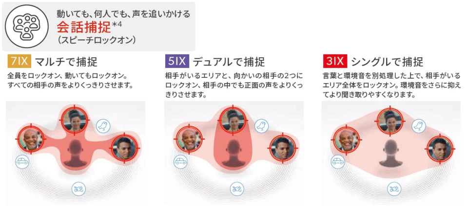全クラスでワードロックオンに対応し、3IX・5IX・7IXクラス以上では両耳装用時にスピーチロックオンにも対応!